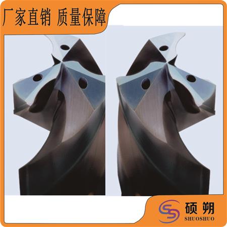 SS/碩朔生產(chǎn)的鎢鋼內(nèi)冷鉆頭有兩刃及三刃,三刃鉆頭每刃的負荷降低,壽命可延長,也可以在保持同樣壽命條件下,增加進給量,從而使生產(chǎn)效率提高。