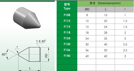 F112:制造車床和外圓磨床頂尖 打井用合金。